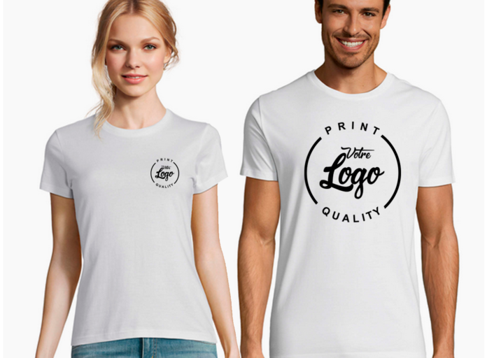 Si par défaut, votre logo est de petite taille, il peut être imprimé sur le devant du t-shirt personnalisé, du côté cœur ou du côté opposé. Ce sont des positions classiques. Lorsqu’une personne vous parle ou vous voit venir, elle a une vue directe sur le logo, ce qui veut dire que l’information est passée.